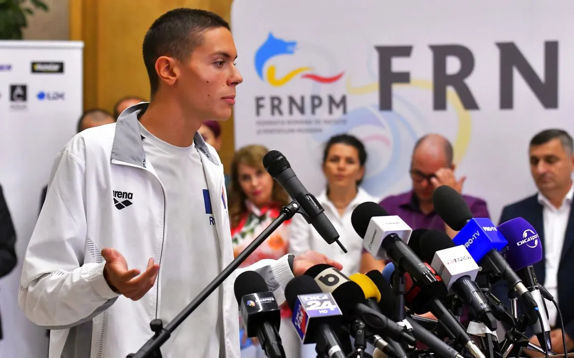 David Popovici la sosirea delegatiei Romaniei de la Campionatul Mondial de Inot de la Budapesta, la Salonul Prezidential al Aeroportului Henri Coanda din Otopeni, duminica 26 iunie 2022. © FOTO:Razvan Pasarica/SPORT PICTURES