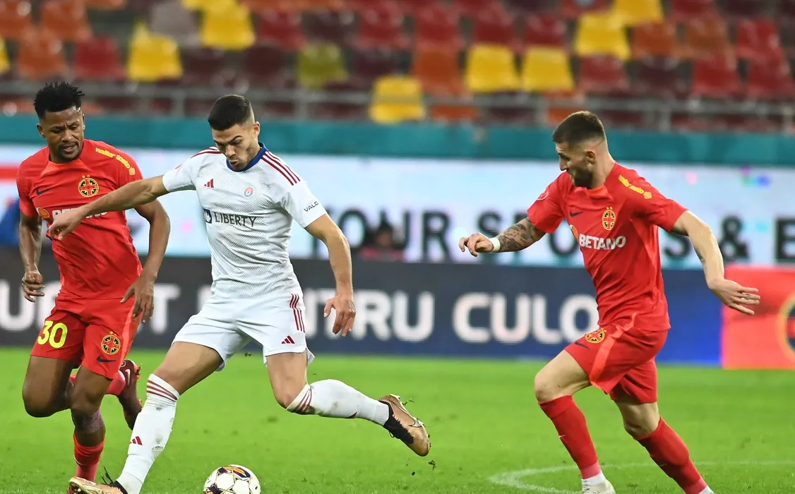 Siyabonga Ngezana, Samuel Teles Pereira Nunes Da Silva si Ovidiu Marian Popescu in meciul de fotbal dintre FCSB si Otelul Galati, din cadrul Superligii Superbet, desfasurat pe Arena Nationala din Bucuresti, duminica 3 decembrie 2023. © FOTO:Razvan Pasarica/SPORT PICTURES