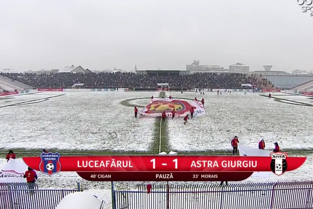 Cu cauciucurile de iarnă spre sferturile Cupei. Șumudică: „Așa nu se poate juca! Doar experiența jucătorilor mei a făcut să câștigăm”. FOTO | Cum arăta terenul de la Oradea