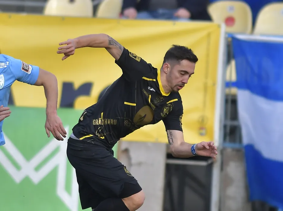 Vadim Rata si Razvan Toni Gradinaru in meciul de fotbal dintre FC Voluntari si Gaz Metan Medias, contand pentru Liga 1 Casa Pariurilor, desfasurat pe Stadionul Anghel Iordanescu din Voluntari, sambata 29 ianuarie 2022. © FOTO:Razvan Pasarica/SPORT PICTURES