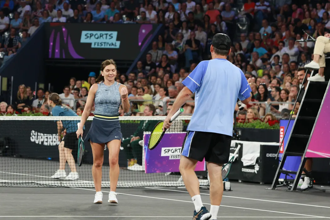 Meciul de tenis demonstrativ organizat în cadrul ediției 2024 a Sports Festival desfășurat la BT Arena din Cluj-Napoca, la care au participat Stefi Graf, Andre Agassi, Justin Gimelstob, Simona Halep, Andrei Pavel și Horia Tecău, sâmbătă 15 iunie 2024. © FOTO: Marian BURLACU/SPORT PICTURES