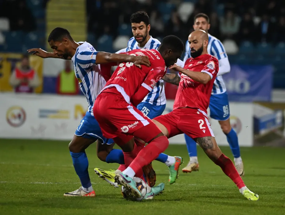 Adel Bettaieb și Gabriel Rodrigues De Moura în meciul de fotbal dintre Poli Iași si Dinamo București contând pentru SuperLiga Superbet, desfășurat pe Stadionul Emil Alexandrescu din Iași, vineri 01 martie 2024. © FOTO: Dragoș PASCANEANU/SPORT PICTURES