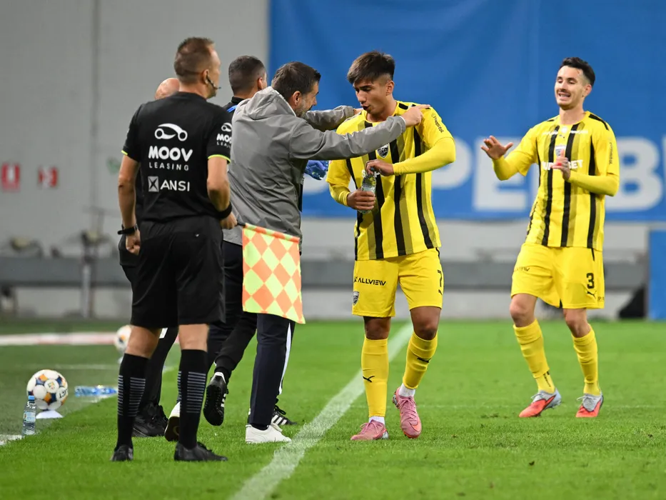Zeljko Kopic discută cu Alexandru Marian Musi dupa un gol marcat in meciul dintre Universitatea Craiova si Dinamo Bucuresti, contand pentru Superliga Superbet, desfasurat pe Stadionul Ion Oblemenco din Craiova, vineri 26 septembrie 2025. © FOTO:Razvan Pasarica/SPORT PICTURES