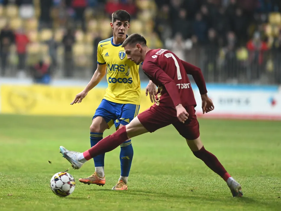 Florin Gheorghe Borta si Ermal Krasniqi in meciul de fotbal dintre Petrolul Ploiesti si CFR Cluj, contand pentru Superliga Superbet, desfasurat pe Stadionul Ilie Oana din Ploiesti, luni 27 februarie 2023. © FOTO:Razvan Pasarica/SPORT PICTURES
