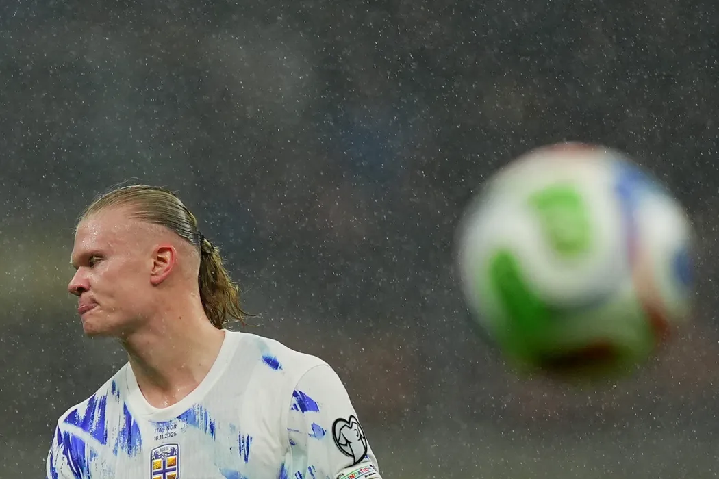 16 November 2025, Italy, Milan: Norway's Erling Haaland reacts during the FIFA World Cup European Qualifying soccer match between Italy and Norway at San Siro Stadium. Photo: Spada/LaPresse via ZUMA Press/dpa