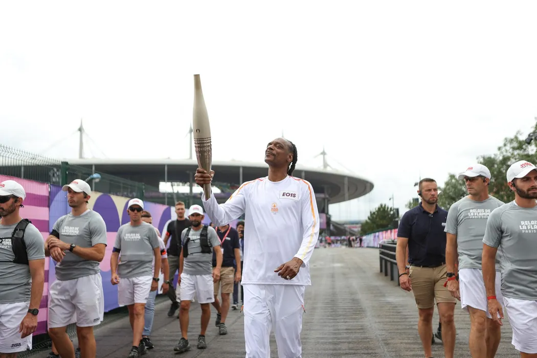 Snoop Dogg participe aux étapes finales du relais de la Flamme Olympique à Saint-Denis, le 26 juillet 2024. JO 2024 © Paris 2024/Maxime Le Pihif/Sipa Press via Bestimage Snoop Dogg participates in the final stages of the Olympic Torch Relay in Saint-Denis, July 26, 2024.,Image: 892634875, License: Rights-managed, Restrictions: , Model Release: no