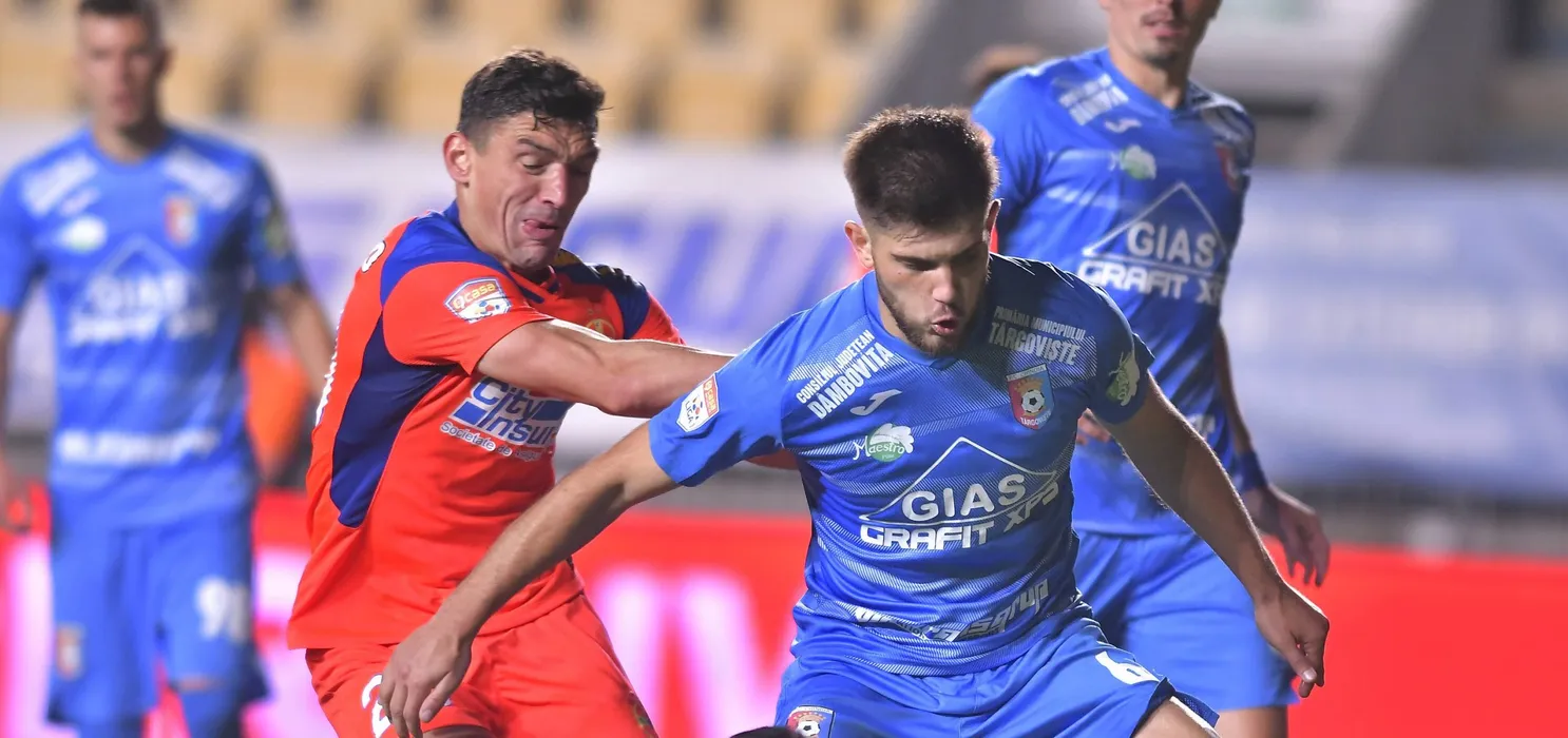 Claudiu Andrei Keseru, Paul Alexandru Iacob si Catalin Vasile Cabuz in meciul de fotbal dintre Chindia Targoviste si FCSB, contand pentru Liga 1 Casa Pariurilor, desfasurat pe Stadionul Ilie Oana din Ploiesti, vineri 1 octombrie 2021. Ploiesti *** Claudiu Andrei Keseru, Paul Alexandru Iacob and Catalin Vasile Cabuz in the football match between Chindia Targoviste and FCSB, counting for Liga 1 Casa Pariurilor, played on Ilie Oana Stadium in Ploiesti, Friday, October 1, 2021 Ploiesti Copyright: xRazvanxPasarica/SPORTxPICTURESx
