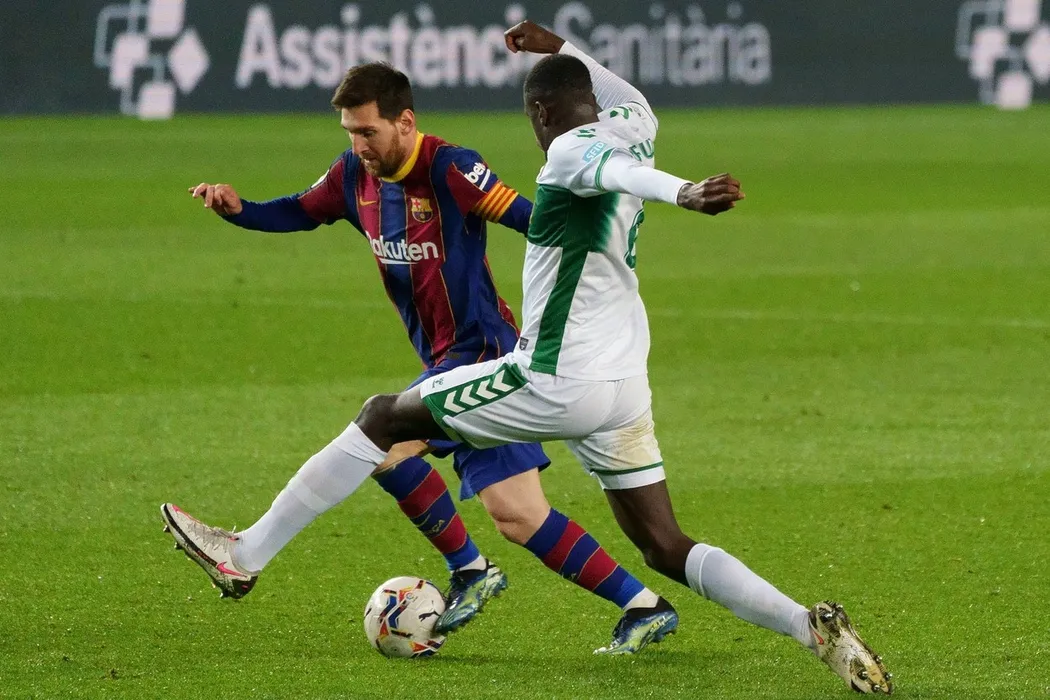 Lionel Messi FC Barcelona forward and Mfulu Elche CF player