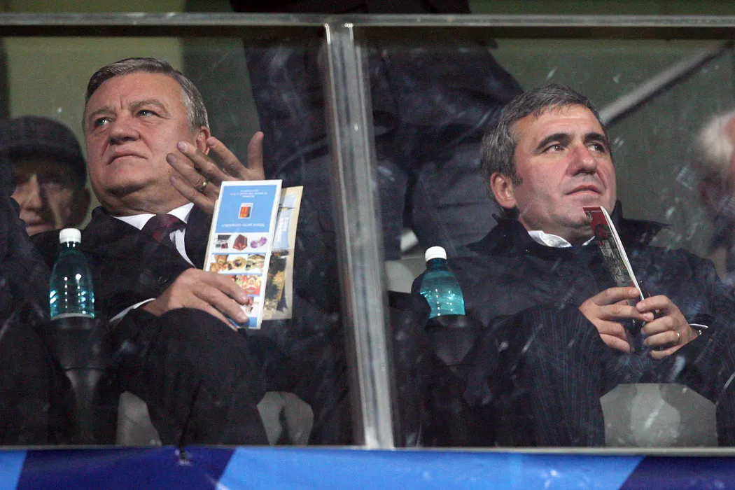 Mircea Sandu si Gheorghe Hagi urmaresc meciul CFR Cluj-Chelsea Londra, din etapa a II-a a grupei A a Ligii Campionilor, disputat in Cluj-Napoca, miercuri, 1 octombrie 2008. MIRCEA ROSCA / MEDIAFAX FOTO