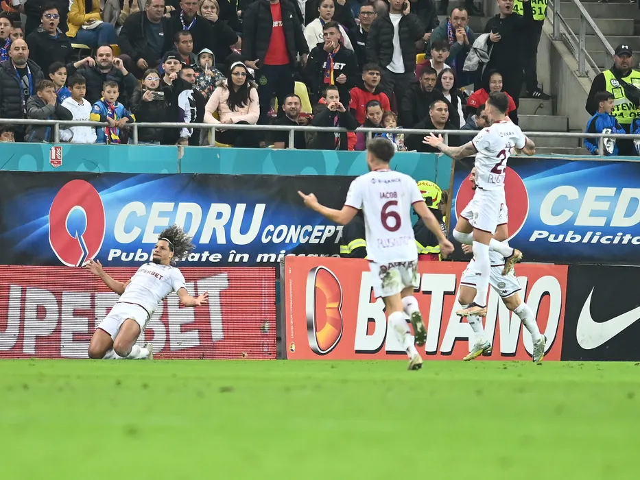 Jayson Jordan Julien Romain Papeau se bucura dupa un gol marcat in meciul de fotbal dintre FCSB si Rapid Bucuresti, din cadrul Superligii Superbet, desfasurat pe Arena Nationala din Bucuresti, duminica 5 noiembrie 2023. © FOTO:Razvan Pasarica/SPORT PICTURES