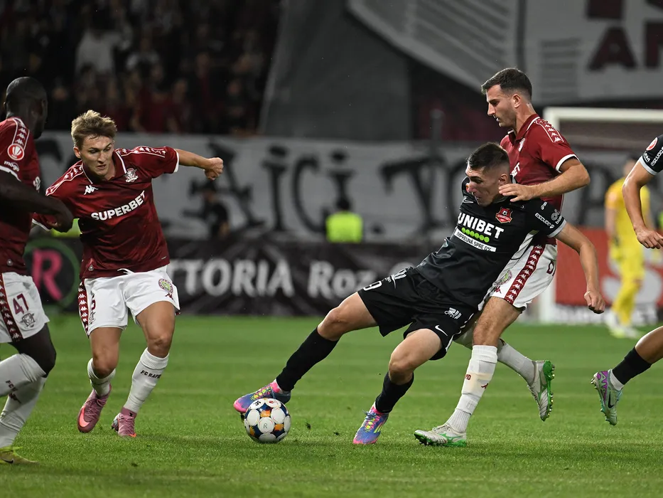 Catalin Alin Vulturar, Marko Gjorgjievski si Lars Kramer in meciul de fotbal dintre Rapid Bucuresti si FC Hermannstadt, din cadrul Superligii Superbet, desfasurat pe Superbet Arena-Giulesti din Bucuresti, duminica 21 septembrie 2025. © FOTO:Razvan Pasarica/SPORT PICTURES
