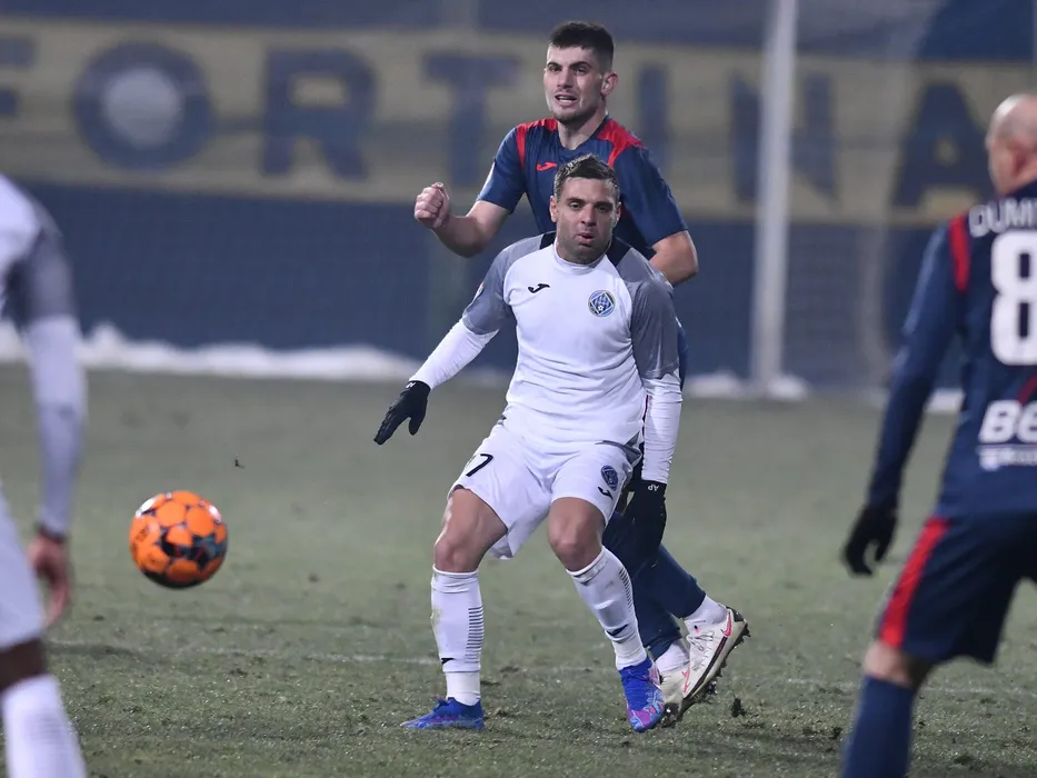 Paul Alexandru Iacob si Adrian Popa in meciul de fotbal dintre Chindia Targoviste si Academica Clinceni, contand pentru Liga 1 Casa Pariurilor, desfasurat pe Stadionul central al Centrului National de Fotbal de la Buftea, vineri 22 ianuarie 2021. © FOTO:Razvan Pasarica/SPORT PICTURES