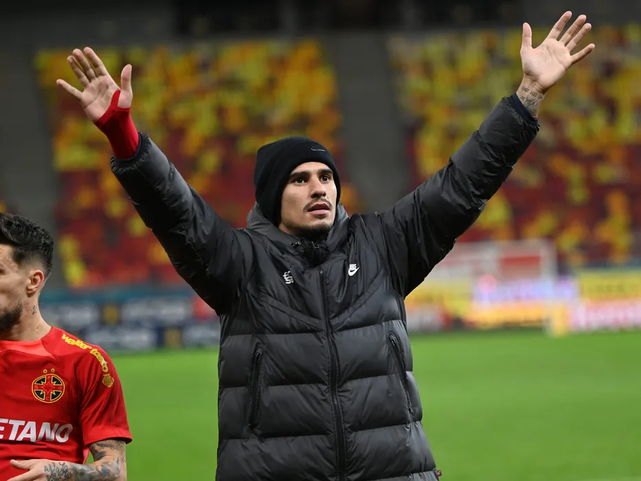 Florinel Teodor Coman saluta galeria dupa meciul de fotbal dintre FCSB si Sepsi OSK Sfantu Gheorghe, contând pentru Superliga Superbet, desfășurat pe Arena Nationala din Bucuresti, duminica 11 februarie 2024. © FOTO: Răzvan PĂSĂRICĂ/SPORT PICTURES