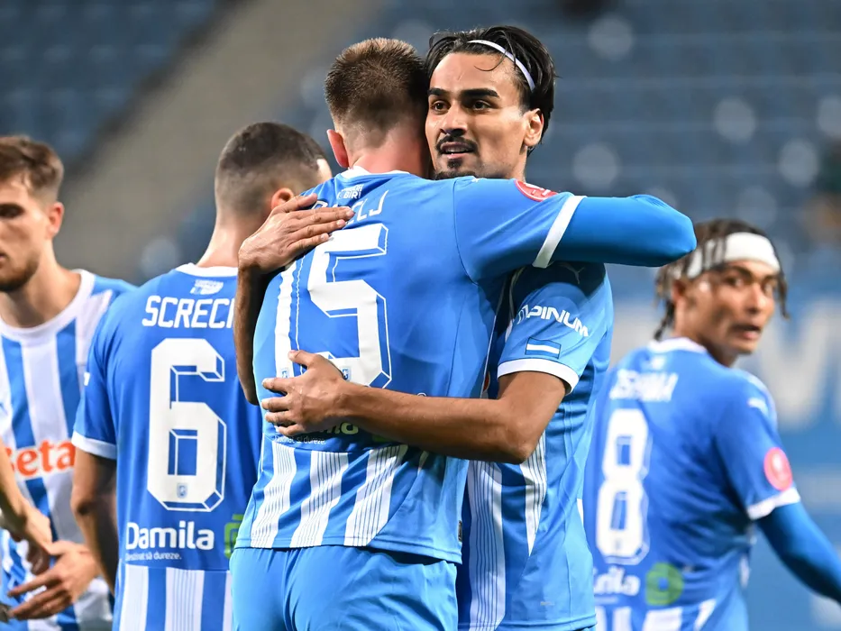 Juraj Badelj îl felicită pe Ștefan Baiaram dupa un gol marcat in meciul dintre Universitatea Craiova si Unirea Slobozia, contand pentru Superliga Superbet, desfasurat pe Stadionul Ion Oblemenco din Craiova, luni 30 septembrie 2024. © FOTO:Razvan Pasarica/SPORT PICTURES