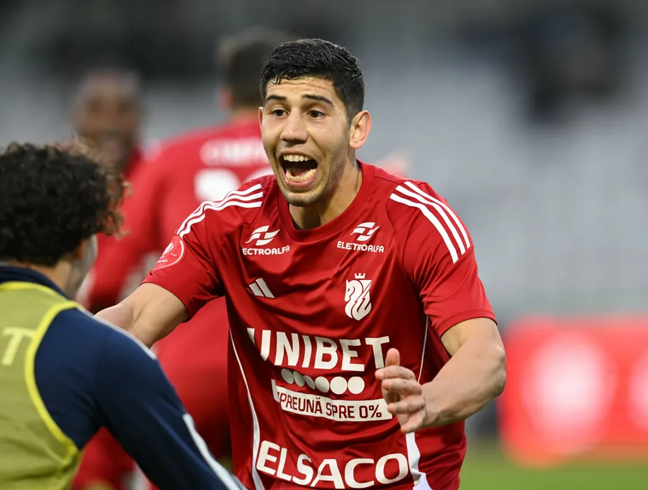 Enzo Adrian Lopez se bucura dupa un gol marcat in meciul de fotbal dintre FC Universitatea Cluj si FC Botosani, contand pentru Superliga Superbet, desfasurat pe Stadionul Cluj Arena din Cluj-Napoca, sambata 1 martie 2025. © FOTO: Flaviu Buboi/SPORT PICTURES