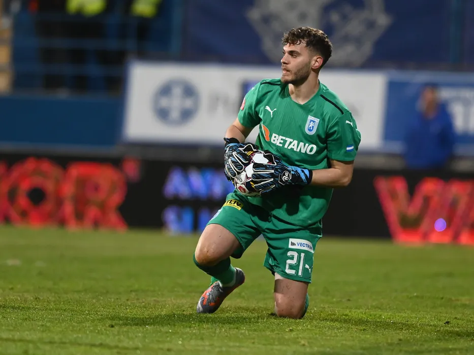 Iulian Laurentiu Popescu in meciul de fotbal dintre Farul Constanta si Universitatea Craiova, contand pentru Play-off-ul Superligii Superbet, desfasurat pe Stadionul central al Academiei Gheorghe Hagi din Ovidiu, sambata 8 aprilie 2023. © FOTO:Razvan Pasarica/SPORT PICTURES