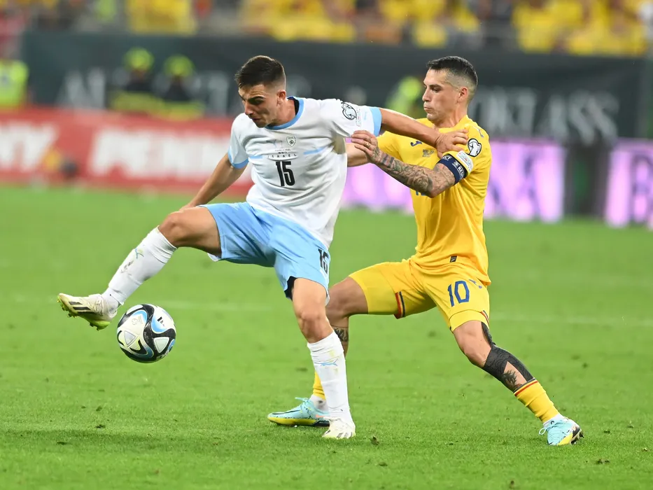 Oscar Gloukh si Nicolae Stanciu in meciul de fotbal dintre Romania si Israel, din cadrul preliminariilor Campionatului European 2024, desfasurat pe Arena Nationala, sambata 9 septembrie 2023. © FOTO:Razvan Pasarica/SPORT PICTURES