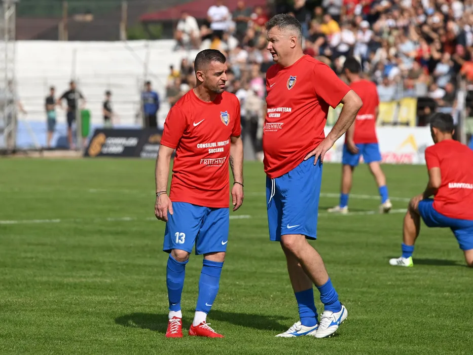 Dorin Semeghin la incalzire inaintea meciului de fotbal dintre UEFAntasticii si All Stars, meci oficial de retragere al lui Dorin Goian, desfasurat pe Stadionul Areni din Suceava, marti 24 iunie 2025. © FOTO: Tudi/SPORT PICTURES