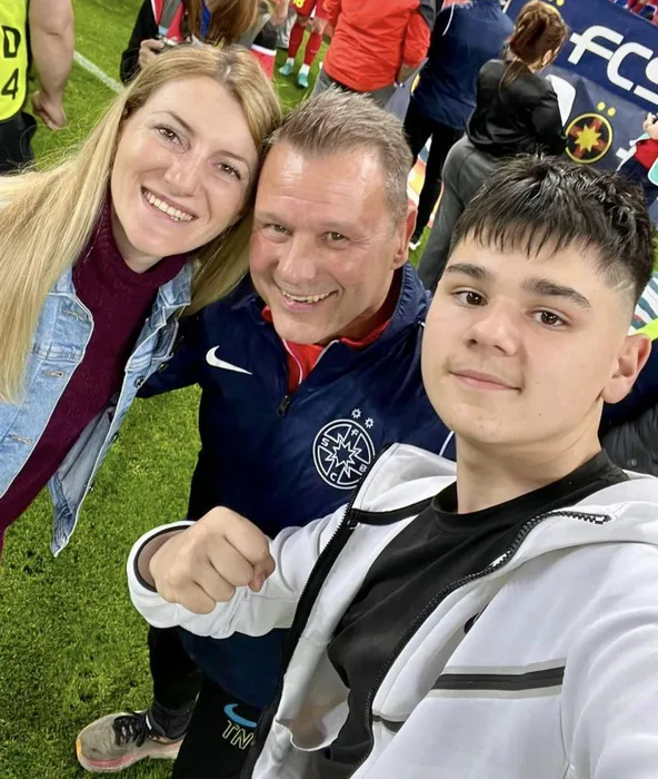 Cum arată soția lui Thomas Neubert! Andreea a intrat și a sărbătorit pe teren titlul obținut de preparatorul fizic cu FCSB. FOTO