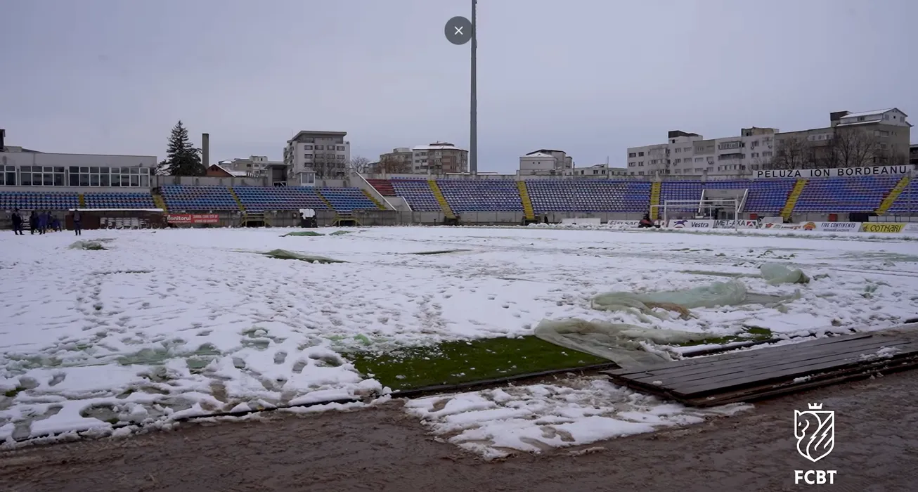 Cum arată terenul de la Botoșani înaintea meciului cu FCSB! Stadionul e înzăpezit. Măsurile luate de autoritățile locale