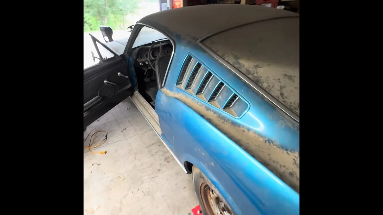 Cum arată un Mustang care a stat peste 30 de ani abandonat într-o baracă ponosită