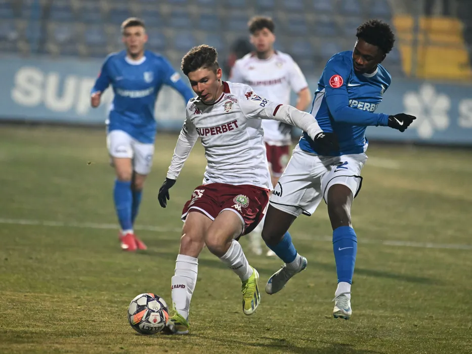 Rareș Mihai Pop si Baptista Fabio Pereira in meciul de fotbal dintre Farul Constanta si Rapid Bucuresti, contand pentru Superliga Superbet, desfasurat pe Stadionul central al Academiei Gheorghe Hagi din Ovidiu, luni 24 februarie 2025. © FOTO:Razvan Pasarica/SPORT PICTURES