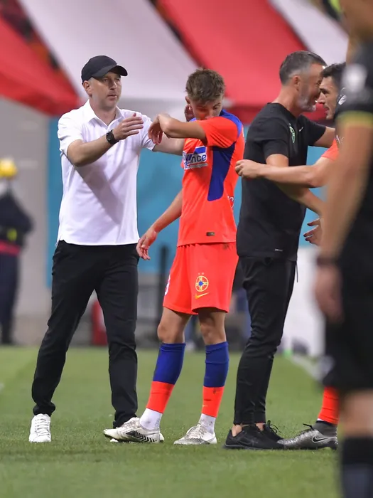 Edward Iordanescu il felicita pe Octavian George Popescu in meciul de fotbal dintre FCSB si Dinamo Bucuresti, contand pentru Liga 1 Casa Pariurilor, desfasurat pe Arena Nationala din Bucuresti, duminica 12 septembrie 2021. © FOTO:Razvan Pasarica/SPORT PICTURES