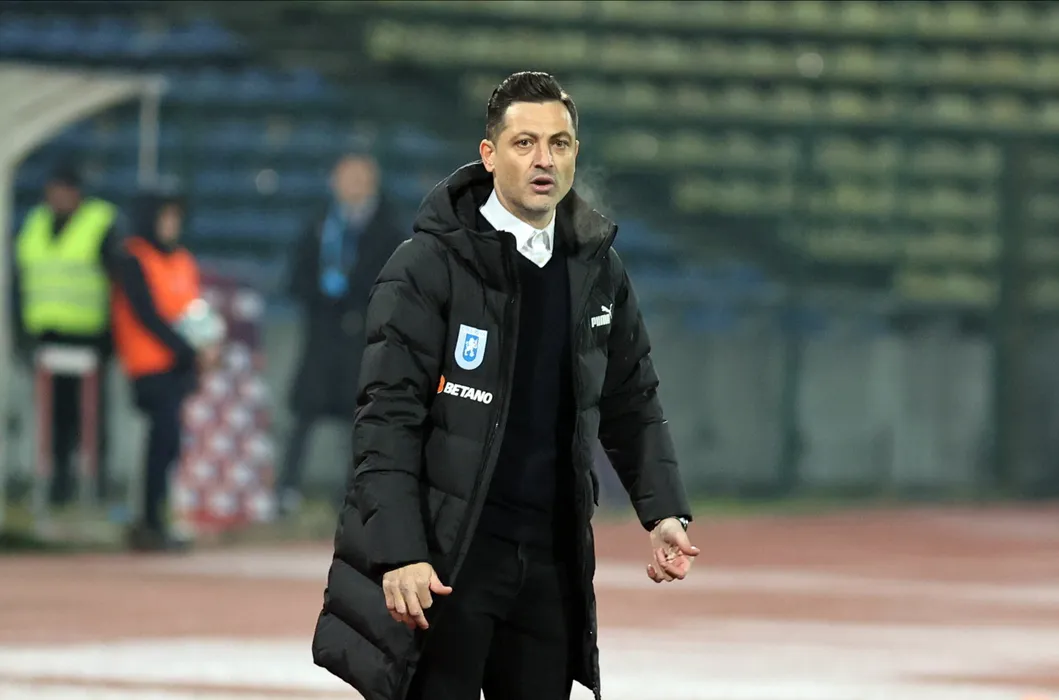 Mirel Radoi, antrenorul formatiei Universitatea Craiova, urmareste meciul de fotbal dintre echipele FC Arges si Universitatea Craiova contand ultima etapa a grupelor Cupei Romaniei, disputat pe stadionul Nicolae Dobrin din Pitesti, miercuri, 7 decembrie 2022. GEORGE FILIP / MEDIAFAX FOTO