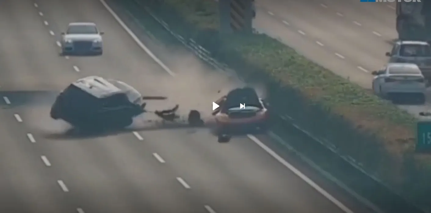 Cum e spulberat un Lamborghini de un SUV, pe autostradă! Îl face praf la o viteză incredibilă