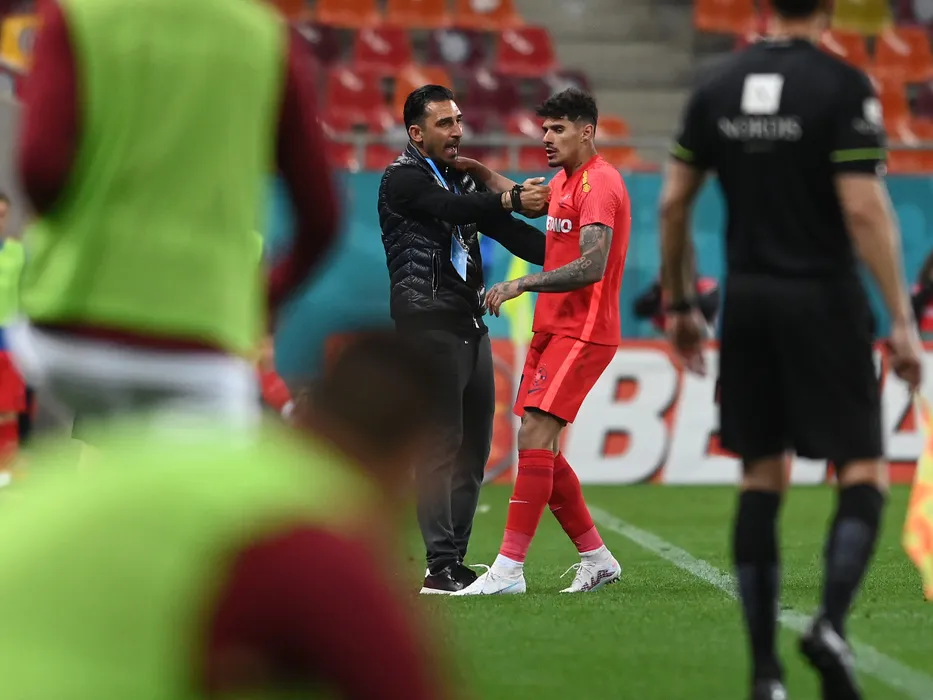 Florinel Teodor Coman este felicitat de catre Elias Charalambous dupa un gol marcat in meciul de fotbal dintre FCSB si CFR Cluj, contand pentru Play-off-ul Superligii Superbet, desfasurat pe Arena Nationala din Bucuresti, duminica 14 mai 2023. © FOTO:Razvan Pasarica/SPORT PICTURES