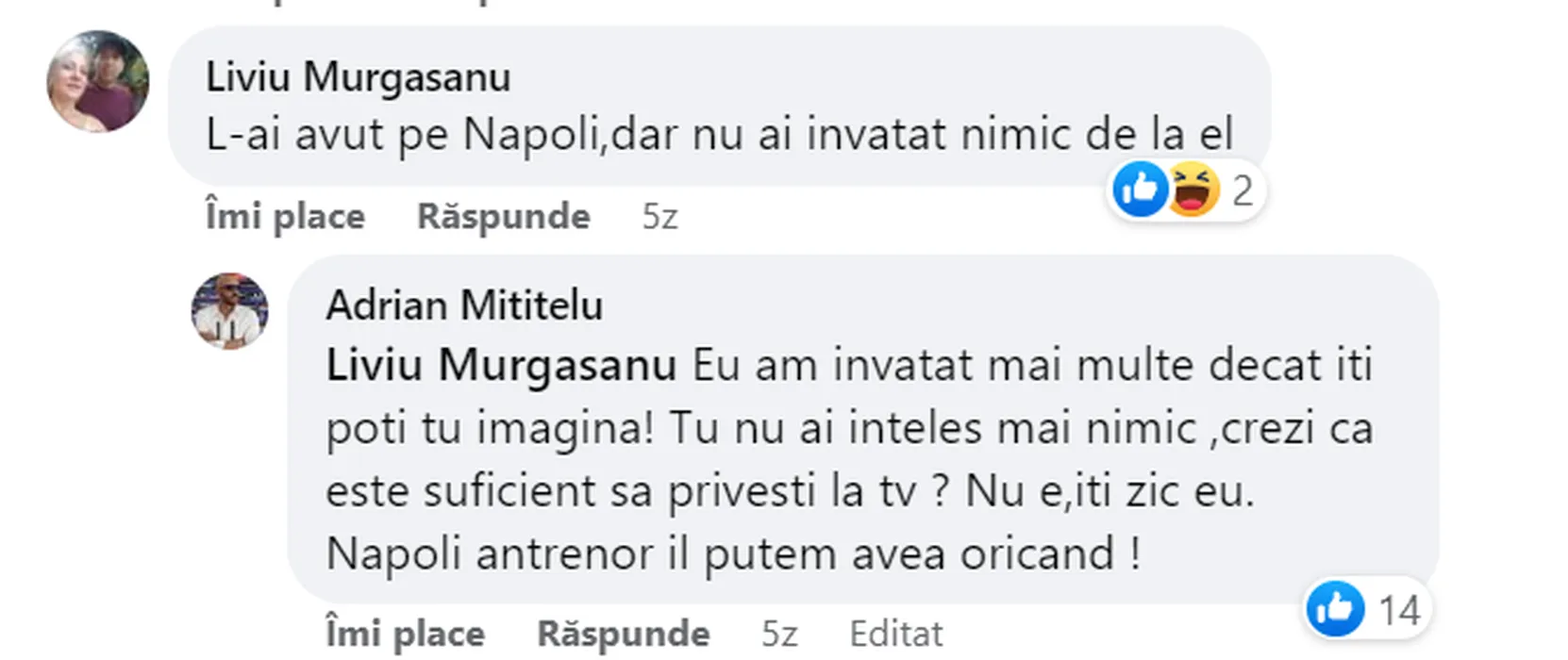 Cum îl umilea Adrian Mititelu pe Nicolo Napoli cu 5 zile înainte să-l pună „principal” la FC U Craiova. „Nu ai cum să nu fii apreciat cu echipa asta!”