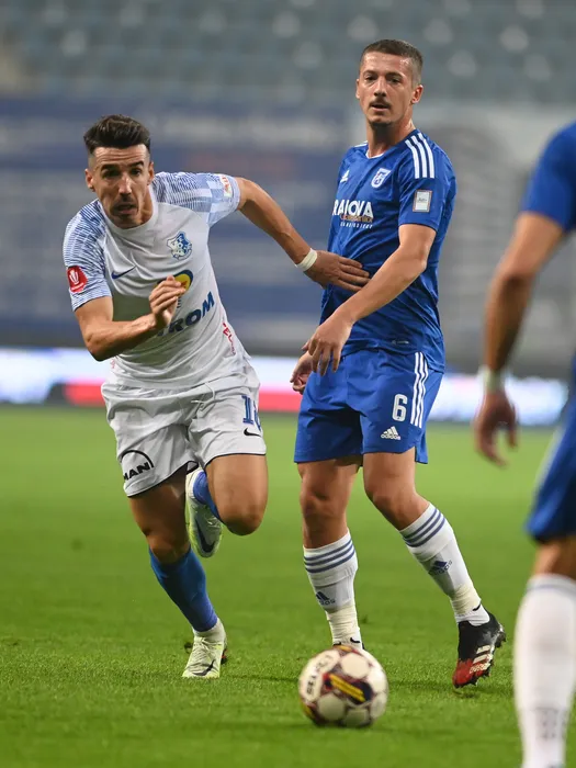 Andrei Viorel Artean si Alexandru Vlad Achim in meciul de fotbal dintre FC U Craiova si Farul Constanta, contand pentru Superliga Superbet, desfasurat pe Stadionul Ion Oblemenco din Craiova, vineri 28 octombrie 2022. © FOTO:Razvan Pasarica/SPORT PICTURES