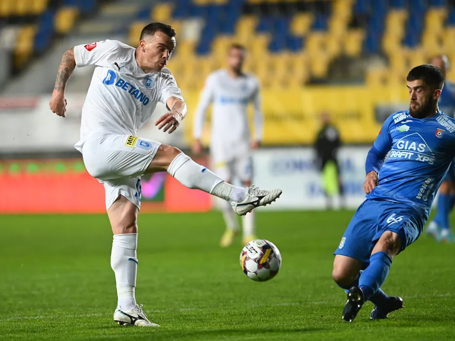 Dan Nicolae Nistor si Rassambek Akhmatov in meciul de fotbal dintre Chindia Targoviste si Universitatea Craiova, contand pentru Superliga Superbet, desfasurat pe Stadionul Ilie Oana din Ploiesti, marti 29 noiembrie 2022. © FOTO:Razvan Pasarica/SPORT PICTURES