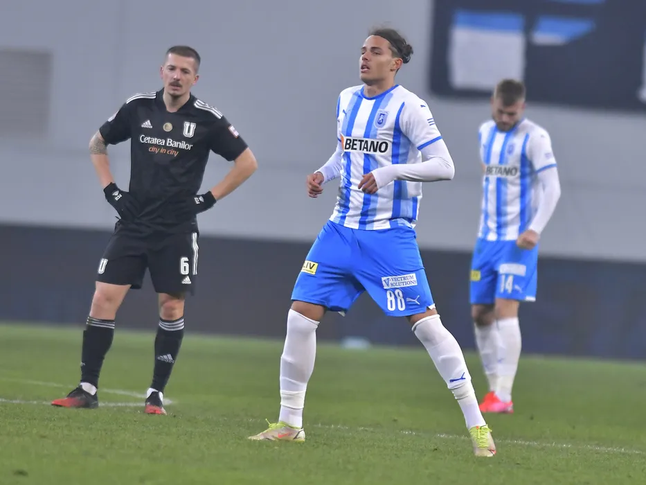 Alexandru Vlad Achim si Atanas Ioan Trica in meciul de fotbal dintre Universitatea Craiova si FC U Craiova, contand pentru Liga 1 Casa Pariurilor, desfasurat pe Stadionul Ion Oblemenco din Craiova, luni 14 februarie 2022. © FOTO:Razvan Pasarica/SPORT PICTURES