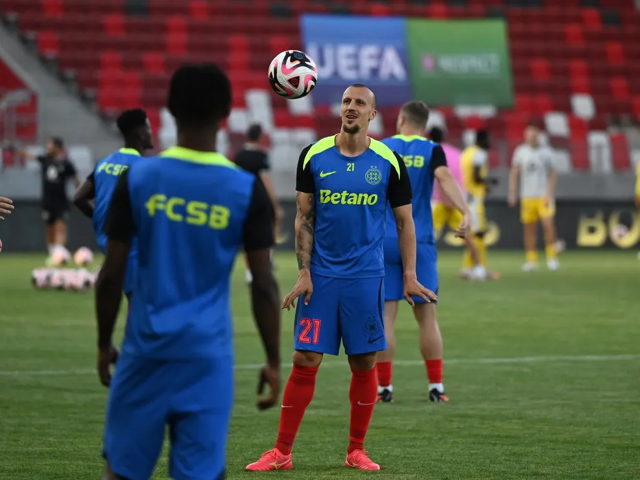 Vlad Iulian Chiricheș la incalzire inaintea meciului dintre Maccabi Tel Aviv FC si FCSB, contand pentru Preliminariile Ligii Campionilor, desfasurat pe Bozsik Arena din Budapesta, miercuri 31 iulie 2024.,Image: 906968967, License: Rights-managed, Restrictions: , Model Release: no