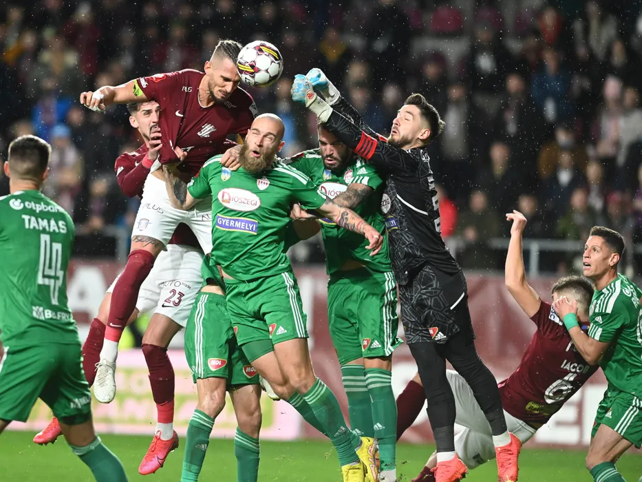 Marko Dugandzic marcheaza un gol de langa Branislav Ninaj, Alexandru Cristian Albu si Alexandru Tudorie in poarta lui Roland Csaba Niczuly sub privirile lui Mario Junior Rondon Fernandez in meciul de fotbal dintre Rapid Bucuresti si Sepsi OSK Sfantu Gheorghe, contand pentru Superliga Superbet, desfasurat pe Stadionul Rapid Giulesti din Bucuresti, vineri 20 ianuarie 2023. © FOTO:Razvan Pasarica/SPORT PICTURES