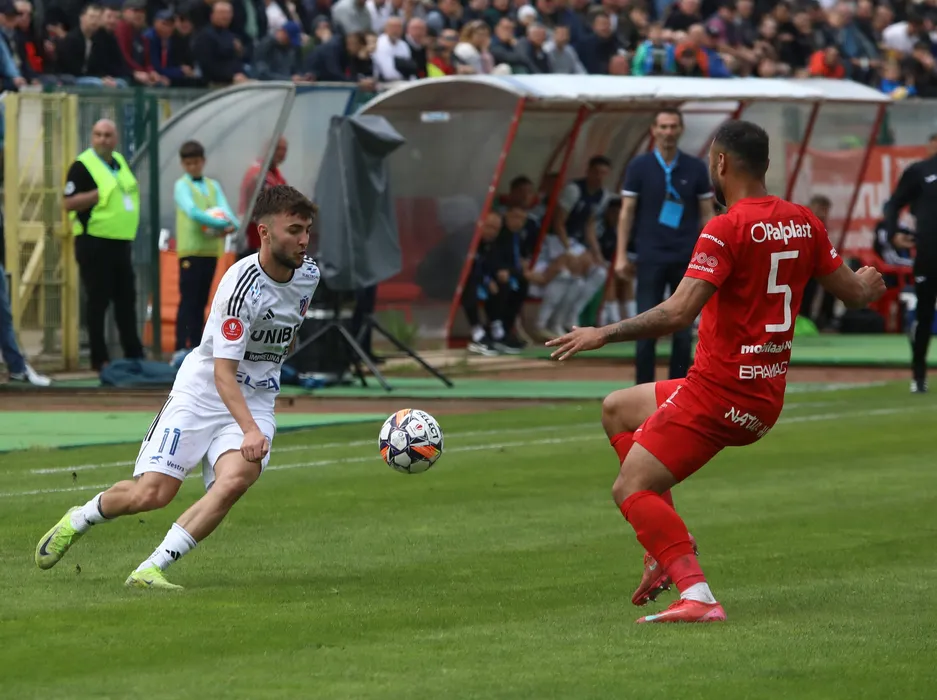 Zoran Mitrov si Florin Bejan in meciul de fotbal dintre FC Botosani si AFC Hermannstadt Sibiu, contand pentru Superliga Superbet Play-Out, desfasurat pe Stadionul Municipal din Botosani, duminica 18 mai 2025. © FOTO: Ionut Tabultoc/SPORT PICTURES