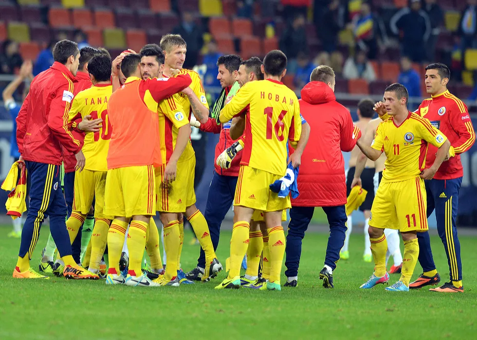 Bucurie romaneasca la finalul meciului cu Ciprian Marica,Dorin Goian,Gabriel Torje si Srgian Luchin.