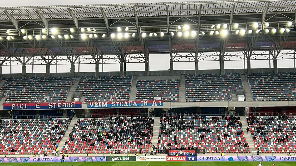 Cum se pregătește CSA pentru noul derby cu Dinamo: atmosferă dezolantă în tribunele stadionului Steaua! Câți suporteri sunt prezenți în Ghencea la partida cu Poli Iași