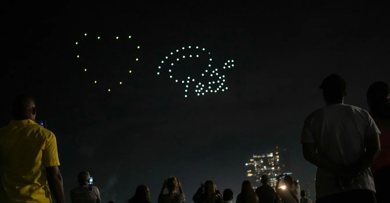 People watch a drone show in homage to the late Brazilian soccer star Pele, over Gonzaga Beach in Santos, Brazil, Saturday, Dec. 31, 2022. Pele, who played most of his career with Santos, died in Sao Paulo on Thursday at the age of 82.,Image: 747179503, License: Rights-managed, Restrictions: This content is intended for editorial use only. For other uses, additional clearances may be required., Model Release: no, Pictured: Pele