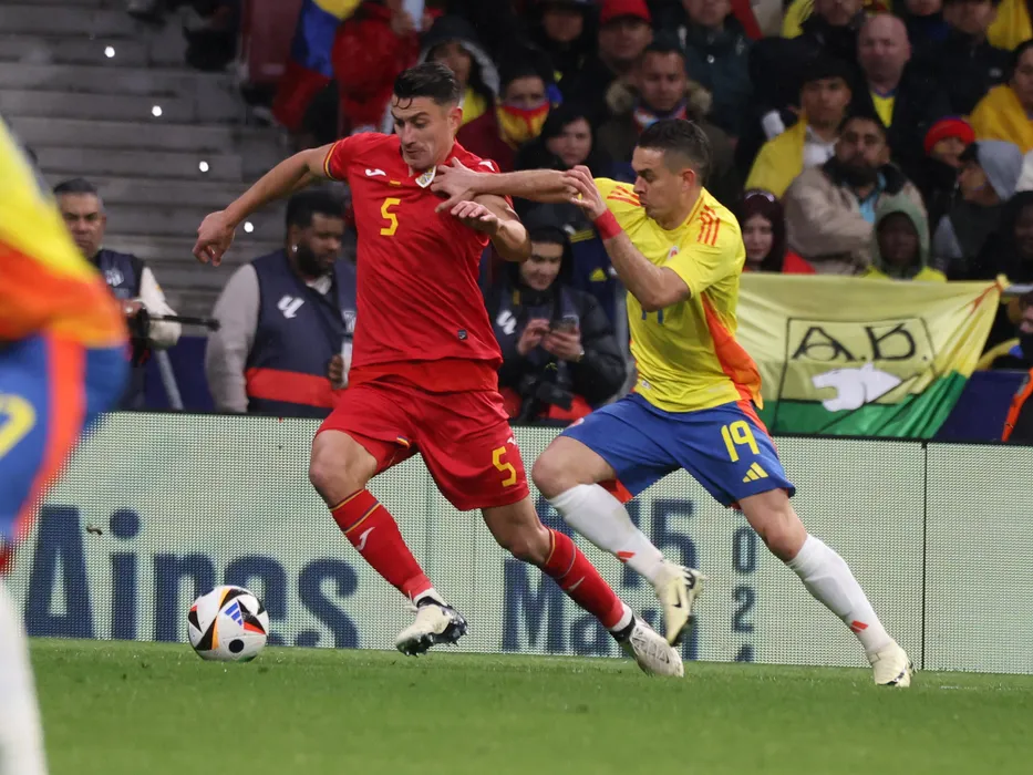 Ionut Nedelcearu si Rafael Borré in meciul amical de fotbal dintre Columbia si Romania, desfasurat pe Stadionul Wanda Metropolitano din Madrid, marti 26 martie 2024. © FOTO:SPORT PICTURES