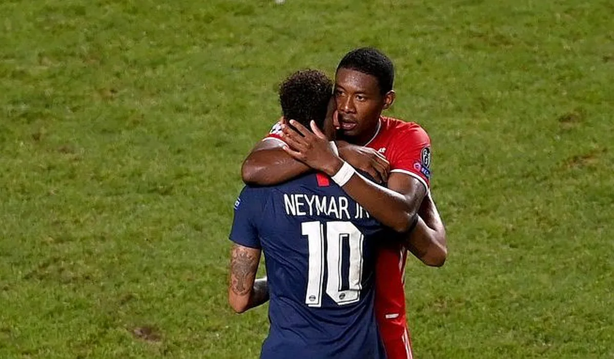 Le Bayern de Munich remporte la finale de la ligue des Champions UEFA 2020 ŕ Lisbonne en gagnant 1-0 face au PSG (Paris Saint-Germain) le 23 Aoűt 2020 - LISBON, PORTUGAL - AUGUST 23: David Alaba of FC Bayern Munich consoles Neymar of Paris Saint-Germain after the UEFA Champions League Final match between Paris Saint-Germain and Bayern Munich at Estadio do Sport Lisboa e Benfica on August 23, 2020 in Lisbon, Portugal. (Photo by Laurence Griffiths - UEFA/UEFA via Getty Images),Image: 554679097, License: Rights-managed, Restrictions: , Model Release: no