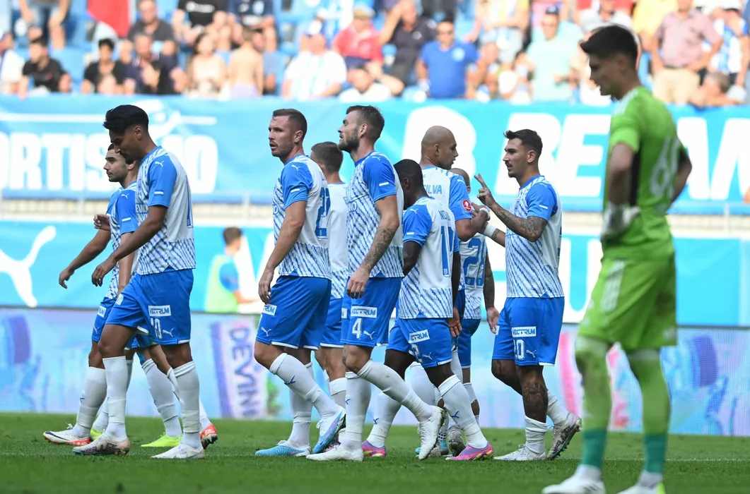 Bucurie a fotbalistilor craioveni dupa un gol marcat cu Screciu Vladimir Ionut, Stefan Baiaram, Jasmin Kurtic, Alexandru Cretu, Raul Michel Melo Da Silva si Jovan Markovic in meciul de fotbal dintre Universitatea Craiova si FC Botosani, contand pentru Superliga Superbet, desfasurat pe Stadionul Ion Oblemenco din Craiova, duminica 1 octombrie 2023. © FOTO:Razvan Pasarica/SPORT PICTURES