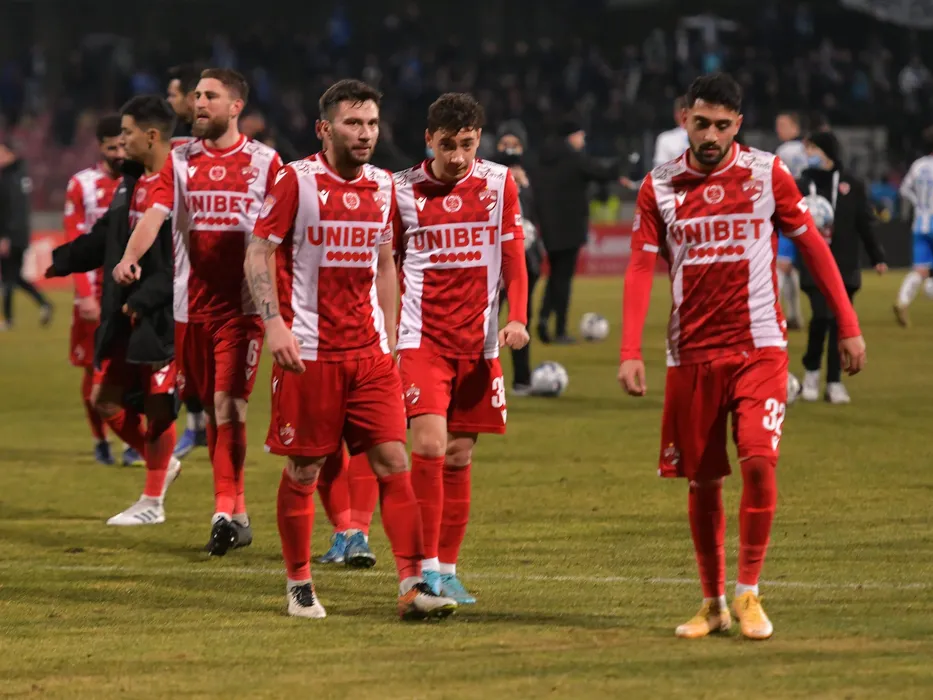 Fotbalistii dinamovisti Alexandru Ilie Rauta, Ahmed Andrei Mustafa Bani si Geani Mihai Cretu suparati dupa meciul de fotbal dintre Dinamo Bucuresti si Universitatea Craiova, contand pentru Liga 1 Casa Pariurilor, desfasurat pe Stadionul Dinamo din Bucuresti, joi 10 februarie 2022. © FOTO:Razvan Pasarica/SPORT PICTURES