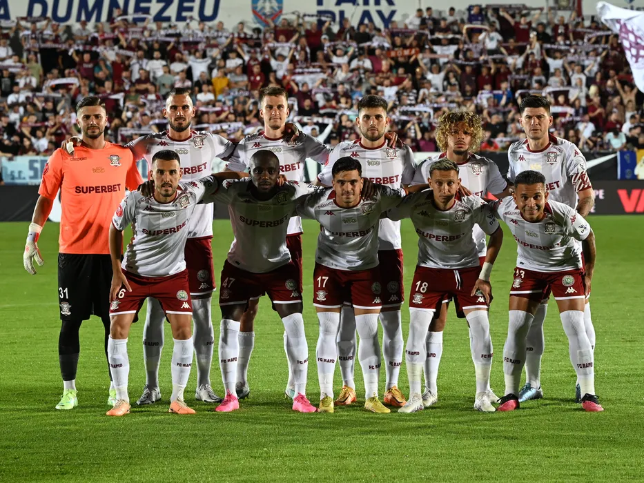 Fotbalistii rapidisti la o fotografie de grup realizata inaintea meciului de fotbal dintre FC Voluntari si Rapid Bucuresti, din cadrul Superligii Superbet, desfasurat pe Stadionul Anghel Iordanescu din Voluntari, luni 7 august 2023. © FOTO:Razvan Pasarica/SPORT PICTURES