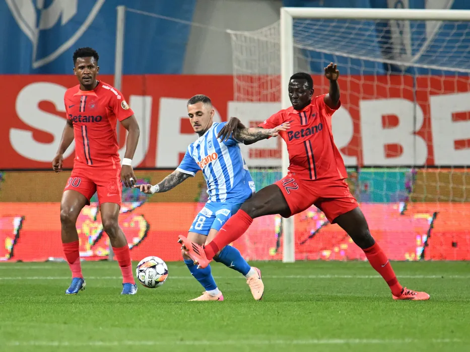 Siyabonga Ngezana, Ionuț Alexandru Mitriță si Baba Alhassan in meciul dintre Universitatea Craiova si FCSB, contand pentru Play off-ul Superligii Superbet, desfasurat pe Stadionul Ion Oblemenco din Craiova, duminica 13 aprilie 2025. © FOTO:Razvan Pasarica/SPORT PICTURES