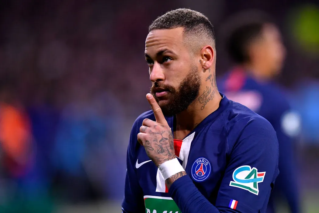 LYON, FRANCE - MARCH 04: Neymar Jr of Paris Saint-Germain reacts after scoring during the French Cup Semi Final match between Olympique Lyon and Paris Saint-Germain at Groupama Stadium on March 04, 2020 in Lyon, France. (Photo by Aurelien Meunier - PSG/PSG via Getty Images)