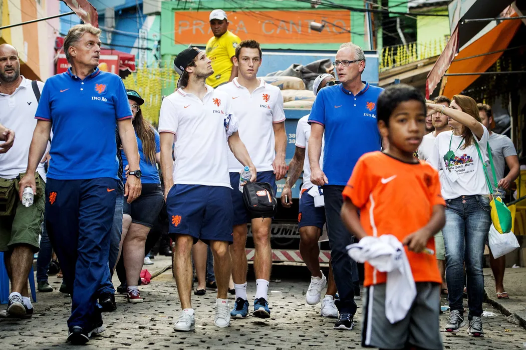 „Dădacă” la antrenament. Van Persie a avut grijă de copiii starurilor Olandei. Jucătorii lui Van Gaal au vizitat cea mai colorată favelă din Rio