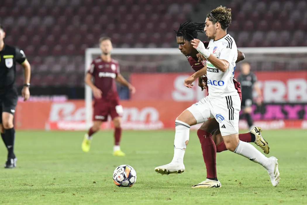 Mohammed Kesselly Kamara și Jaly Mouaddib în meciul de fotbal dintre FC CFR 1907 Cluj si FC Botoșani, contând pentru Superliga Superbet, desfășurat pe Stadionul Dr.Constantin Rădulescu din Cluj-Napoca, duminică 25 august 2024. © FOTO: Flaviu BUBOI/SPORT PICTURES