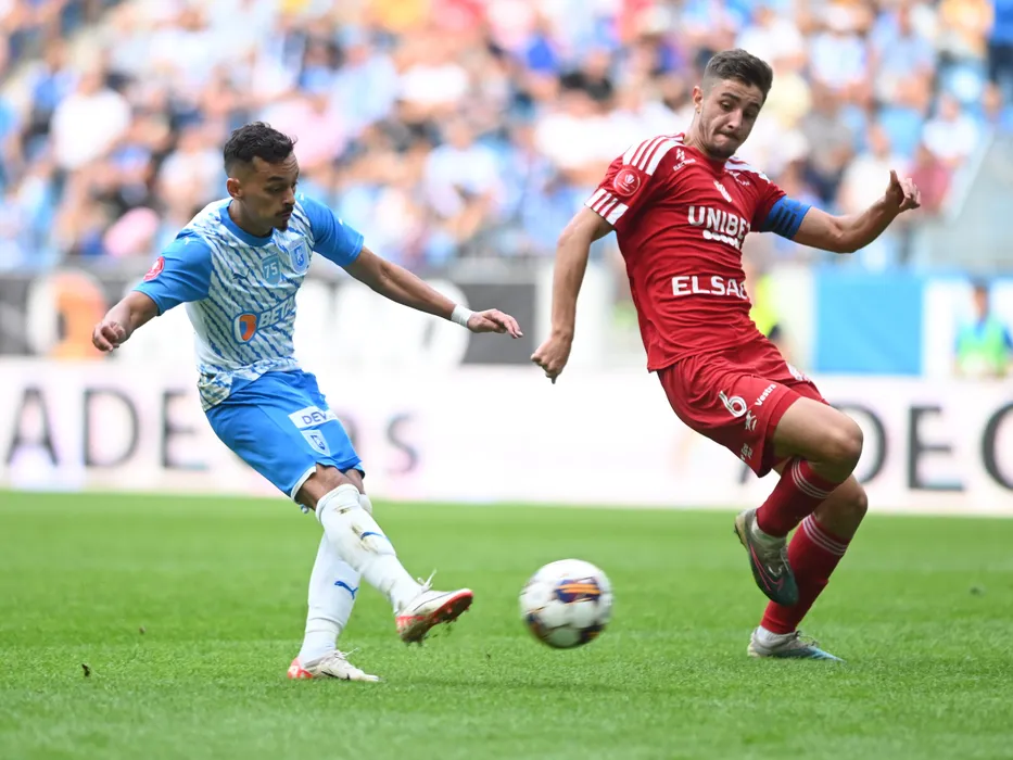 Lyes Hafid Houri si Victor Robert Dican in meciul de fotbal dintre Universitatea Craiova si FC Botosani, contand pentru Superliga Superbet, desfasurat pe Stadionul Ion Oblemenco din Craiova, duminica 1 octombrie 2023. © FOTO:Razvan Pasarica/SPORT PICTURES
